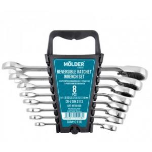 MT56108 | Набір ключів комбінованих 8, 10, 12, 13, 14, 15, 17, 19 мм з трищіткою | MOLDER |