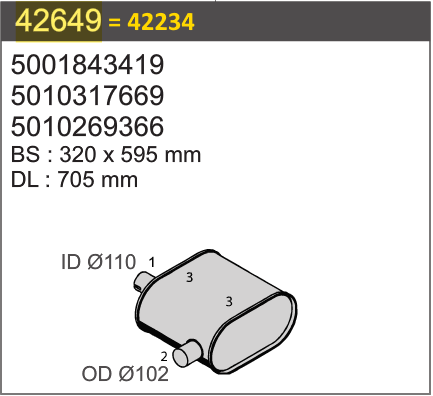 Артикул: 42234 Глушник RVI Euro 3 |