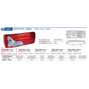 ISS 1036 LK LH | Ліхтар MAN TGA L MAN TGA L синє скло з кабелем | ISIKSAN |