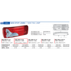 ISS 1036 LK RH | Ліхтар MAN TGA R MAN TGA R синє скло з кабелем | ISIKSAN |