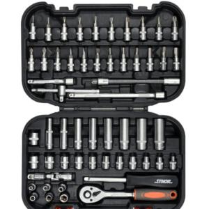 58643 | Набір ключів головок і біт Набір головок торцевих, насадок STHOR : квадрат 1/4" з інструментами [56 Од.] | VOREL |