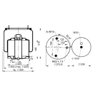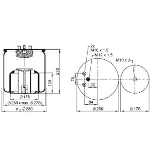 SA520451 | Пневморесора Бублик подвійний з плитою (отвори паралельно) 157мм | SABO |