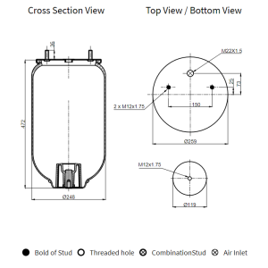 W-4157-N4 | Пневморесора ROR 39002 A8 верхня плитв D=259mm дві шпильки без стакана | WORLD TRUCK |