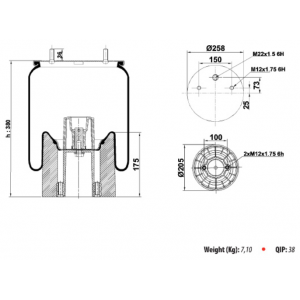 Пневморесора ROR 39002 A8 верхня плитв D=259mm дві шпильки без стакана
