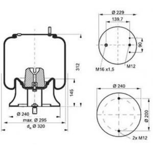Пневморесора IVECO 370, EUROCARGO I-III, EUROTECH MH, EUROTECH MP, EUROTECH MT, TURBOSTAR, TURBOTECH; MERCEDES OH, TOURO (O 500) 01.70-