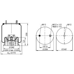 Пневмоподушка кабіни задн Лів/Прав RVI C, D, KERAX, MAGNUM, PREMIUM 2; VOLVO FE, FE II D7E240-G9K320 10.04-