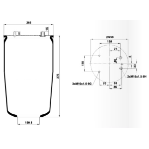 SP 55836-K02 | Пневморесора DAF з мет. стаканом 2 пов. | SAMPA |