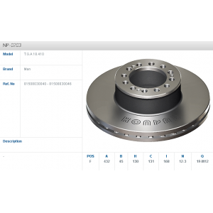 NP-0203 | Диск гальмівний d 432x130x12 MAN TGA, VAN HOOL T918 | KONPAR |
