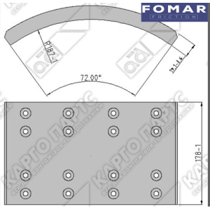 65001880N10A4RV | Накладки SCANIA 415x178x19,1x235 ( 1 рем) | FOMAR |