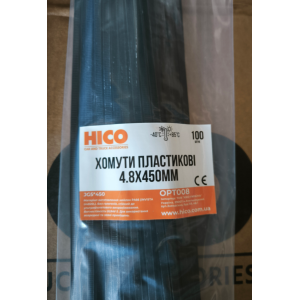 OPT008 | Хомут пластик чорний 4,8x450 mm пластик чорний | BORG-HICO |